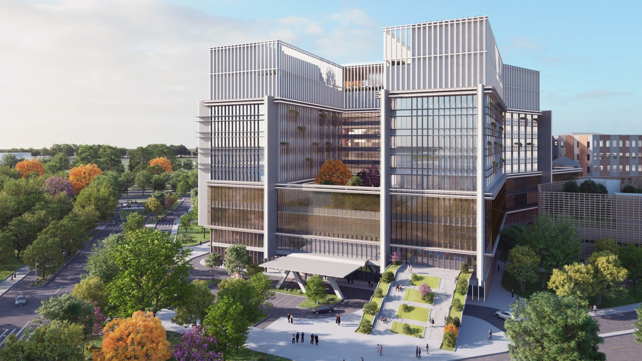 臺大虎尾醫院新建醫療大樓以病人及醫護人員為雙中心的空間規劃,滿足醫療機能與管理系統,塑造開放、創新的新醫療空間體驗,預定於114年完工啟用,興建後與既有醫療大樓、一期醫護宿舍結合,虎尾醫院院區整體將達總樓地板面積12萬平方公尺規模,總床數805床的大型醫療中心,打造為中台灣名眾的健康守護基地。
